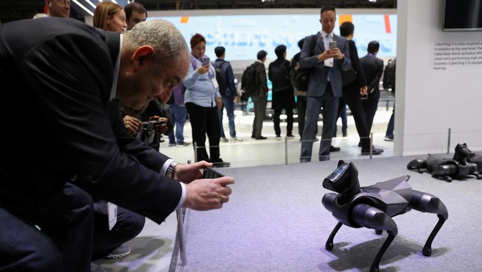 Orang-orang memotret Xiaomi Cyberdog di Mobile World Congress (MWC), di Barcelona, Spanyol 26 Februari 2024. Mobile World Congress (MWC) 2024 merupakan pameran perdagangan terkemuka di dunia untuk teknologi seluler dan industri terkait. Β
