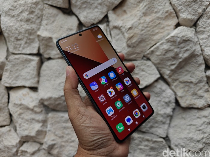 Redmi Note 13 Pro 4G mengusung layar AMOLED 6,67 inch dengan resolusi Full HD+, refresh rate 120Hz, kecerahan maksimum 1.300 nits dan terlindung Gorilla Glass 5. Foto: Adi Fida Rahman/detikINET