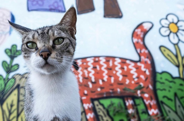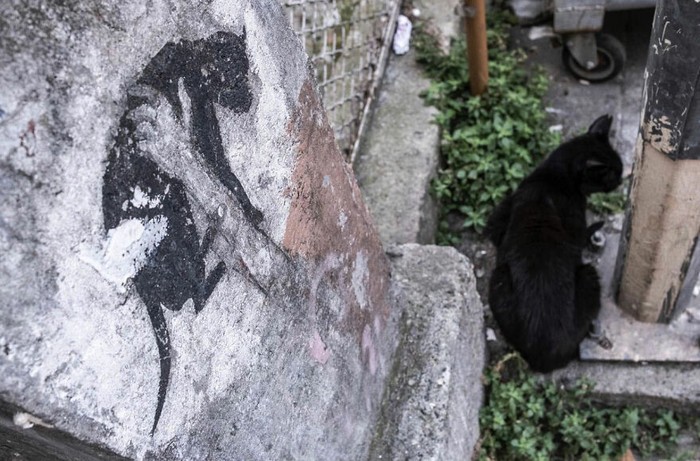 Badang si kucing menyatu dengan gambar di dinding. foto: Boredpanda/Serkan Tekin