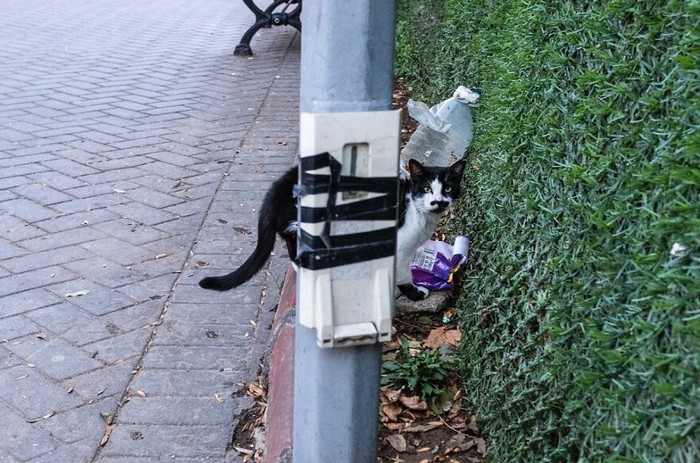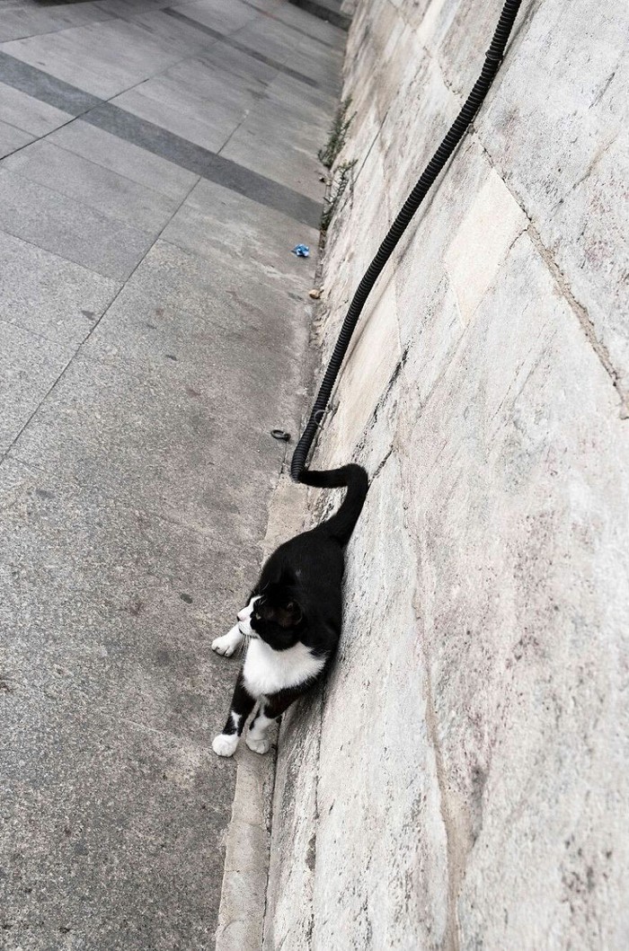 Perfect! Ekor kucing yang menyambung sempurna dengan pipa di dinding, bahkan warnanya pun sama. Foto: Boredpanda/Serkan Tekin