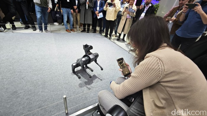 Selain ponsel baru dan mobil listrik, Xiaomi juga memamerkan robot anjing bernama Cyberdog 2 di MWC 2024. Robot menggemaskan ini dilengkapi 19 sensor untuk penglihatan, sentuhan, dan pendengaran. Robot anjing ini juga terlihat bisa melakukan gerakan atraksi seperti salto ke belakang. Foto: Agus Tri Haryanto/detikINET
