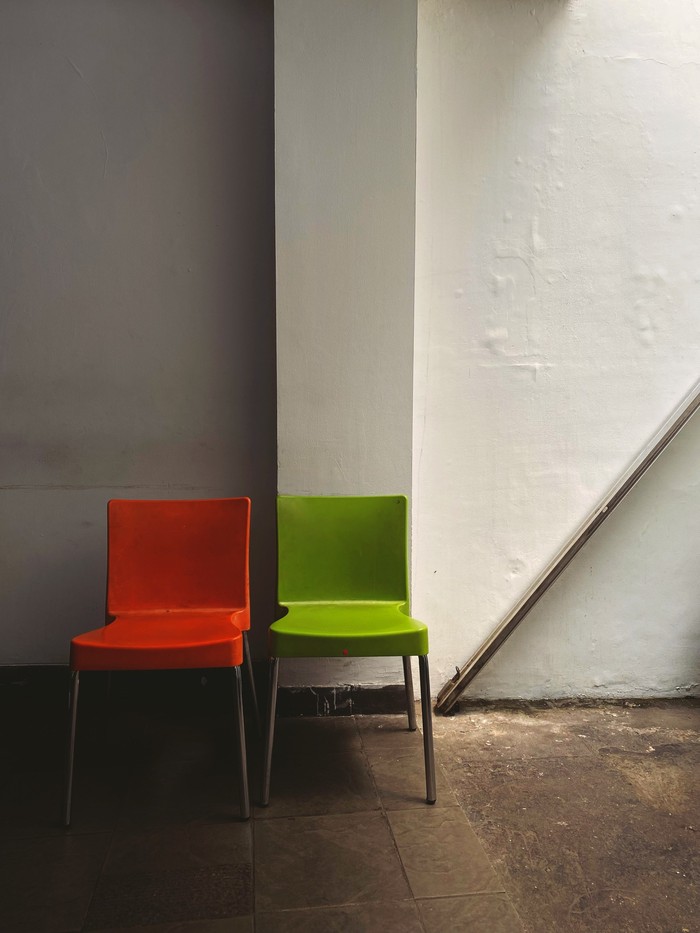 OBJEK Toni Rinaldo (Indonesia) berjudul Koalisi, sebuah gambar yang dibuat dengan cermat yang menggambarkan dua kursi di ruang tunggu. Fotografer menggambarkan bagaimana perbedaan warna kursi membangkitkan kebersamaan berbagai budaya yang hidup berdampingan dalam masyarakat Indonesia. Foto: Sony World Photography