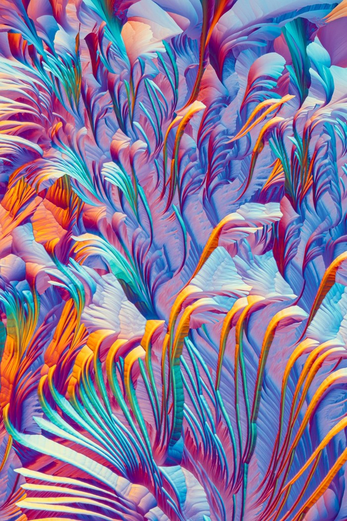 KREATIF Rob Blanken (Belanda) mengabadikan foto makro kristal asam amino B-alanin, L-glutamin, dan glisin, yang menunjukkan warna dan tekstur luar biasa yang terkandung dalam struktur kompleks ini. Foto: Sony World Photography