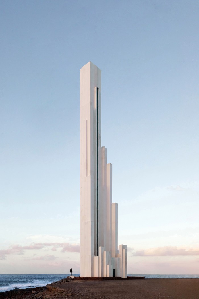 ARSITEKTUR Ana Skobe (Slovenia) dengan judul gambar Falling Out of Time, yang menggambarkan mercusuar di langit cerah saat senja, desain geometrisnya yang ramping kontras dengan lanskap pantai dan sosok yang menyendiri. Foto: Sony World Photography