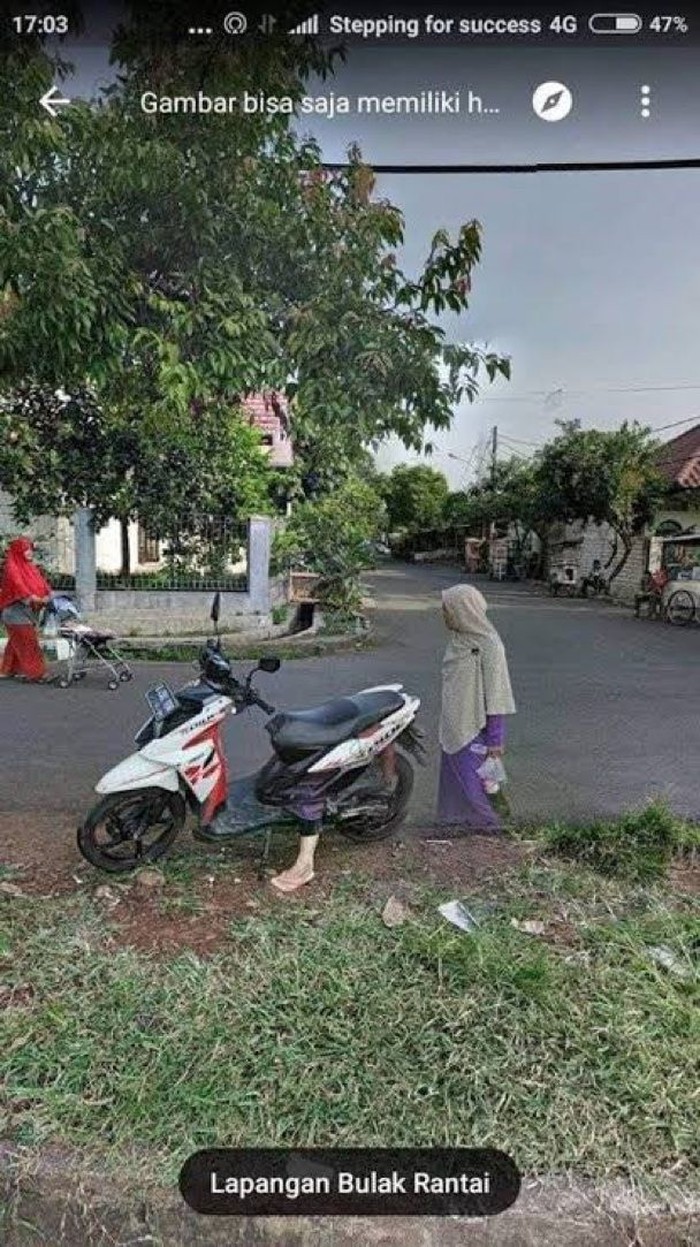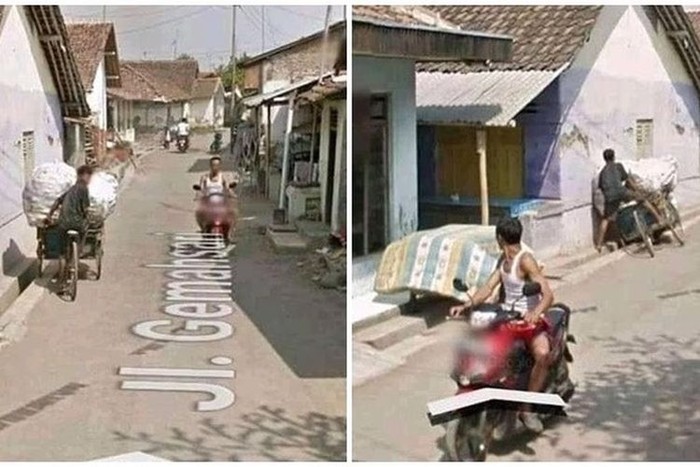 Gegara terlalu fokus melihat mobil Google Street View, Si Bocil menyerempet bocah di pinggir jalan. Foto: Twitter