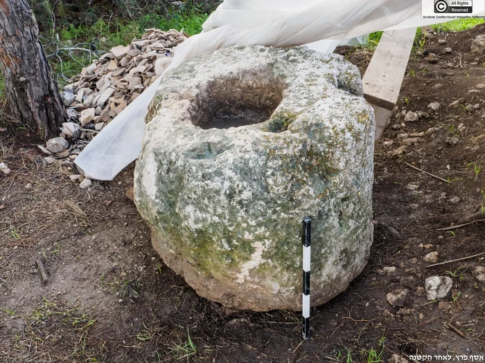 Masalahnya, dalam kasus khusus ini, dikatakan bahwa penggalian yang dilakukan di situs tersebut mendokumentasikan dan melestarikan pengetahuan tentang pemukiman zaman awal Islam. Gambar ini menunjukkan sebuah pemberat sekrup dengan dua ukiran salib dari salah satu mesin pemeras zaitun. Foto: Israel Antiquities Authority (IAA)