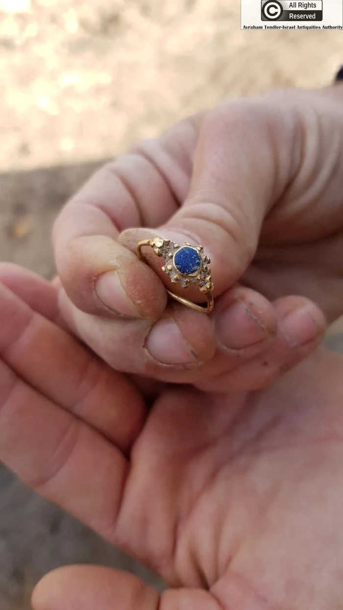 Situs Nebi Zachariah merupakan rumah bagi komunitas Kristen dan Islam. Para arkeolog menemukan salib-salib yang dipahat pada batu-batu alat pemeras zaitun. Selain itu juga ditemukan timbangan kaca dengan tulisan Arab, yang digunakan untuk menimbang koin dengan presisi, dan sebagian prasasti Arab yang mungkin mengutip ayat Al-Qur'an. Gambar ini adalah cincin emas dengan batu lapis. Foto: Israel Antiquities Authority (IAA)