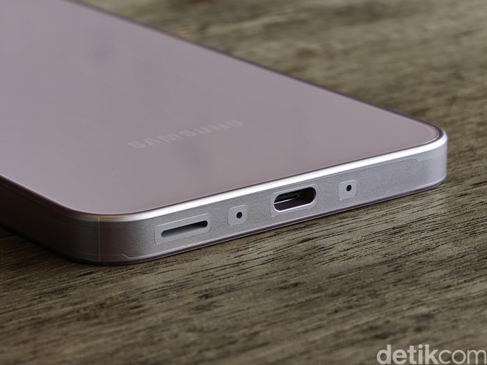 Bagian belakang memakai material kaca Gorilla Glass Victus Plus dengan frame plastik. Galaxy A35 membawa sertifikasi IP67 untuk ketahanan debu dan air.Β Foto: Adi Fida Rahman/detikINET