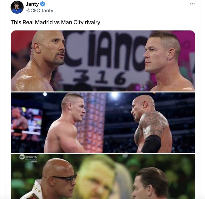 Ini kejar-kejaran skor antara Madrid lawan City. Foto: Twitter
