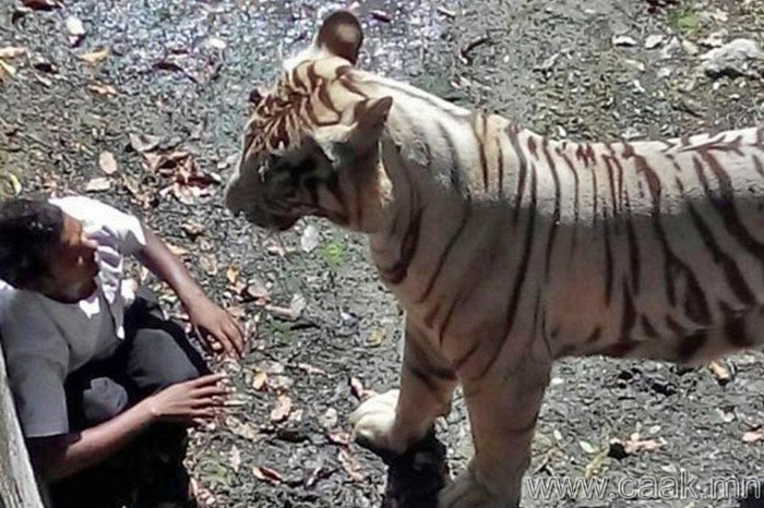 Pria berusia 20 tahun ini, yang diidentifikasi nama depannya, Maqsood, terpeleset dan jatuh ke kandang harimau di Kebun Binatang New Delhi. Harimau itu melihatnya dan apa yang terjadi selanjutnya mengerikan. Baru beberapa jam kemudian penjaga kebun binatang dapat membawa harimau kembali ke kandangnya dan menemukan jenazahnya. Foto: Allthatinteresting