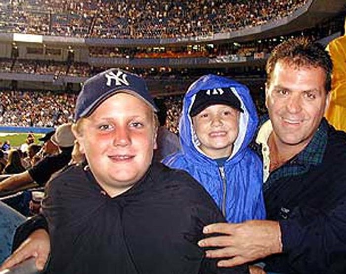 Joe Kelly bersama kedua putranya di Yankee Stadium pada 10 September 2001. Kelly terbunuh keesokan harinya dalam serangan di Menara Kembar WTC di New York. Foto: Allthatinteresting
