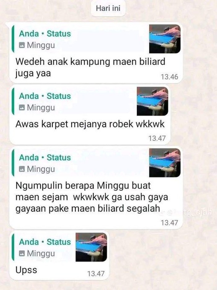 Dia pikir dia doang yang suka main billiard. Foto: X/txtdariwhatsap