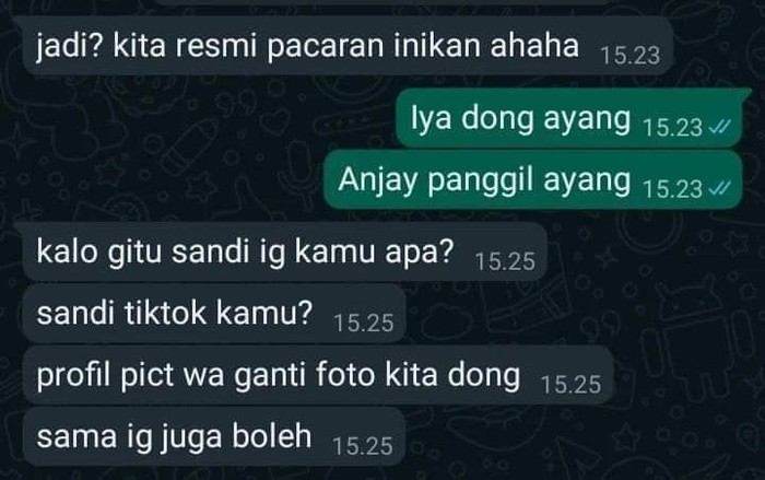 Siapa nih baru jadian langsung minta password seluruh medsos pasangannya? Foto: X/txtdariwhatsap