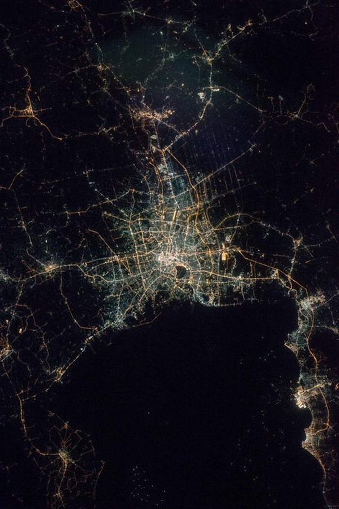 Keindahan Tokyo, Jepang di malam hari. Foto: NASA & ISS via @timecaptales