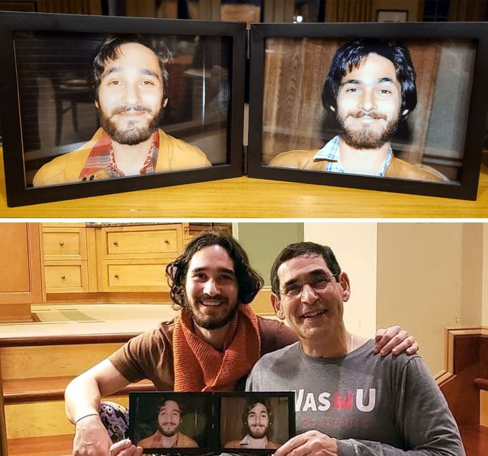 "Orang-orang selalu mengatakan bahwa saya terlihat seperti Ayahku. Jadi, ketiga saya menemukan foto beliau saat berusia 28 tahun, saya harus membuat ulang saat berusia 28 tahun" Foto: Boredpanda
