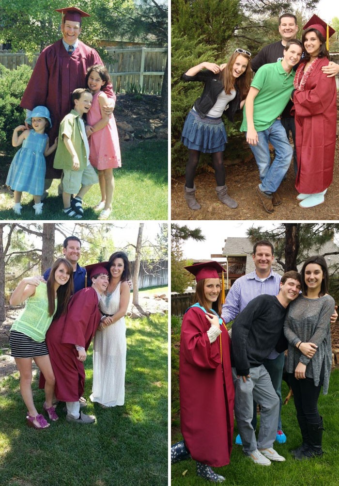 Potret kompak keluarga pakai toga yang dibuat dari 14 tahun lalu, mulai dari sang ayah sampai anak terakhir. Foto: Boredpanda