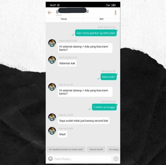 Waduh, waduh. Begini jadinya kalau beli barang di mantan. Foto: Instagram/dramaolshop.id
