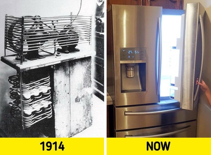 Penampakan kulkas jadul dibandingkan sekarang yang futuristik. Foto: Brightside