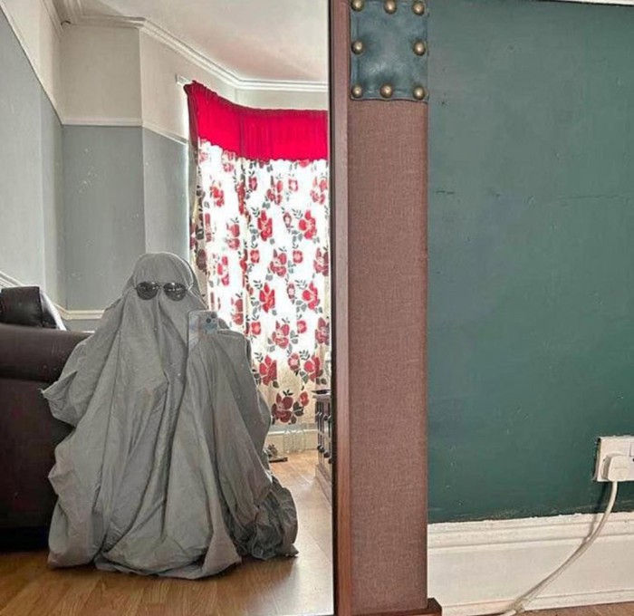 Ngumpet dibalik selimut bak hantu. Foto: Sadanduseless