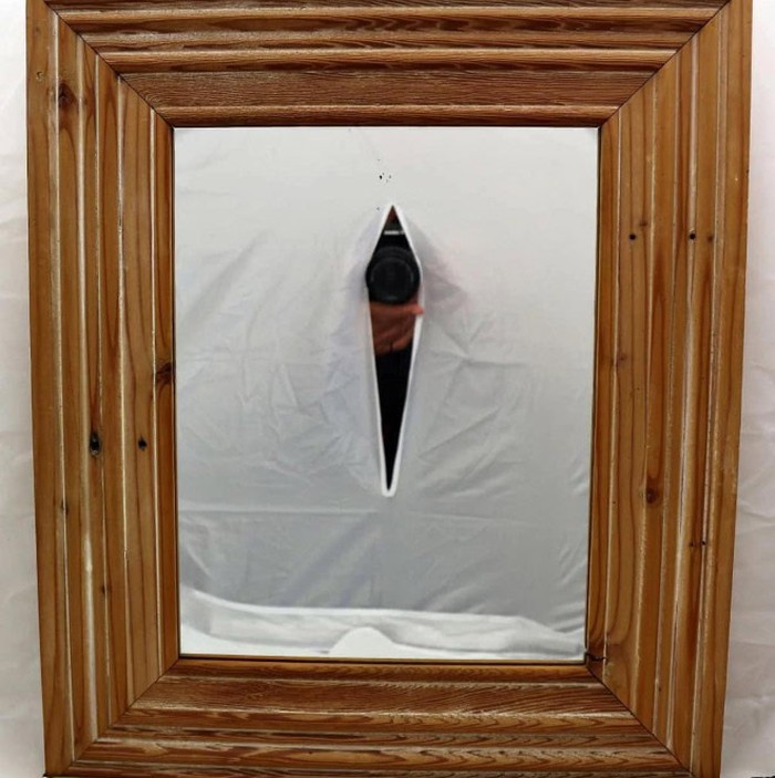 Dalam jual beli online, memotret barang untuk diiklankan jadi hal biasa. Namun ketika barang tersebut adalah cermin tantangannya menjadi unik, seperti foto ini.