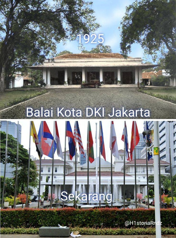 Begini perbandingan Balai Kota Jakarta 1925 vs sekarang. Foto: TikTok/@geminiranja