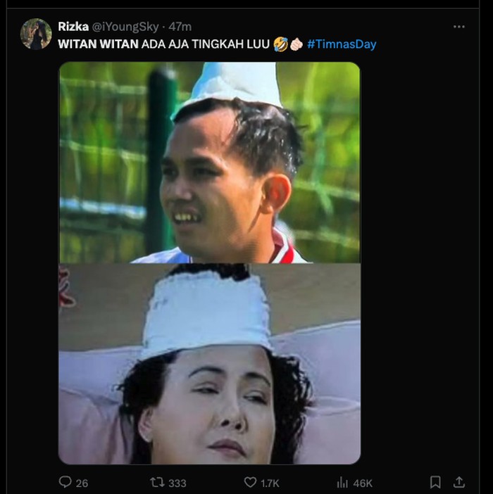 Netizen bilang Witan imut melwan titan. Foto: Twitter