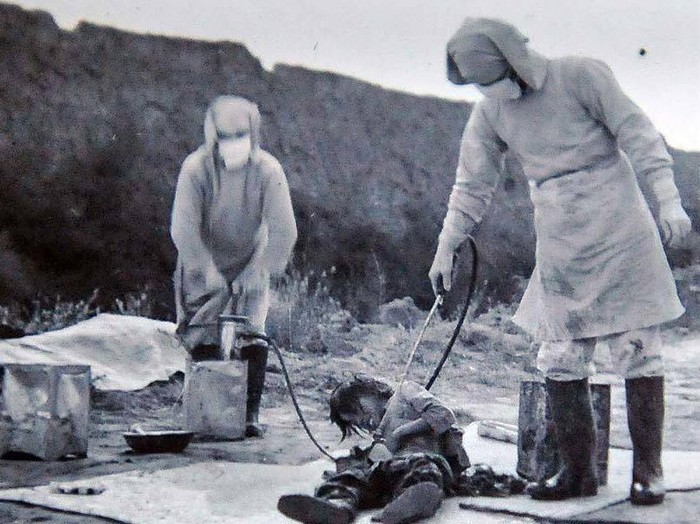 Potret divisi senjata biologi dan kimia Jepang Unit 731 melakukan beberapa eksperimen manusia yang paling aneh dalam sejarah terhadap warga sipil Tiongkok yang ditangkap. Terlihat di sini adalah personel Unit 731 yang melakukan percobaan bakteriologis pada subjek uji pada November 1940. Kisah mengerikan Unit 731 ini sekarang menjadi ide untuk berbagai film horor dan fiksi ilmiah dari Hollywood sampai Korea. Foto: Allthatinteresting