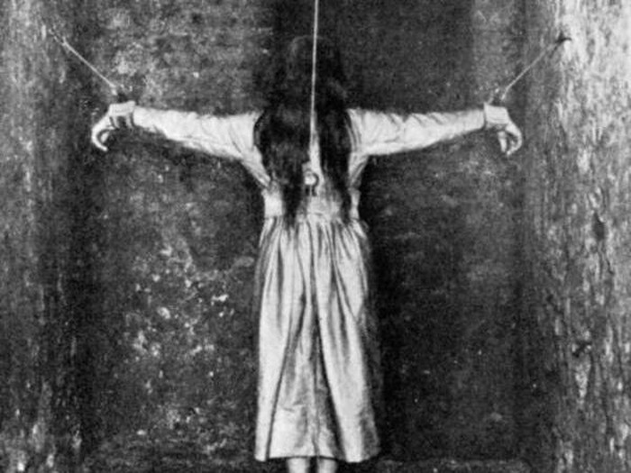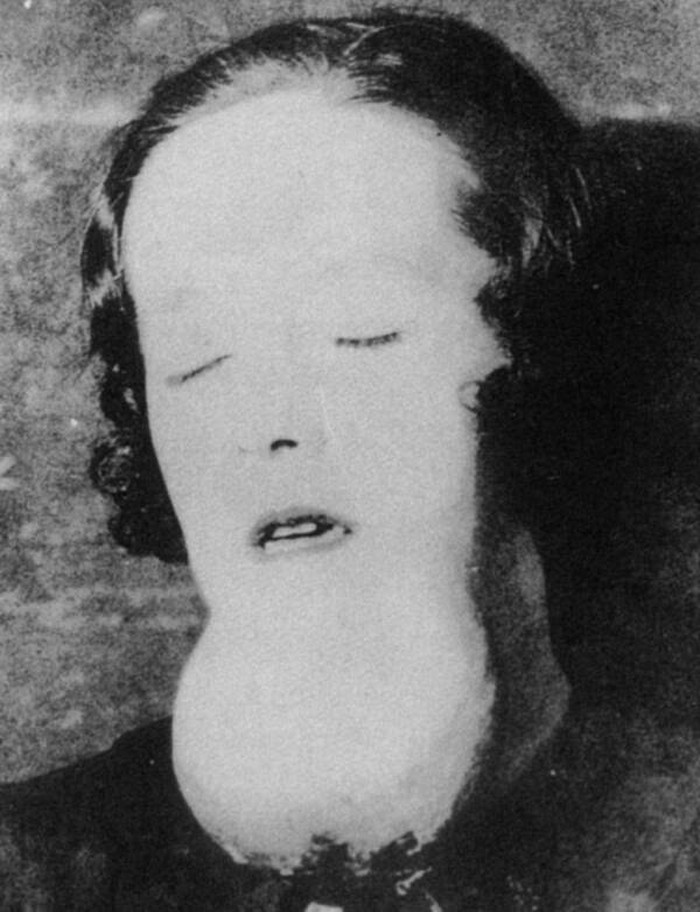 Ini bukan foto hantu Sadako tapi ini adalah foto pasien rumah sakit jiwa Prancis pada tahun 1900. Tidak jelas kondisi apa yang diderita pasien malang ini. Pada zaman itu, penanganan ODGJ di Eropa bisa dikatakan kejam untuk ukuran standar masa kini mulai dari depresi dan syok hingga skizofrenia dan lain-lain. Foto: Allthatinteresting