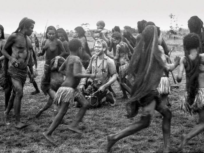 Michael Rockefeller (tengah), putra gubernur New York dan calon Wakil Presiden AS Nelson Rockefeller, menghilang di suatu tempat di Papua Nugini pada awal 1960-an. Terlihat di sini pada perjalanan pertamanya ke sana pada Mei 1960, senyum Rockefeller menandai nasibnya yang suram. Diyakini dia dibunuh dan dimakan oleh pedalaman PapuaΒ yangΒ waktu itu masih memenggal kepala musuh dan memakan daging mereka. Foto: Allthatinteresting