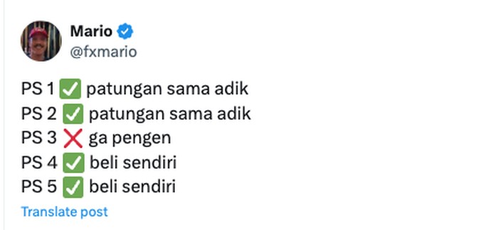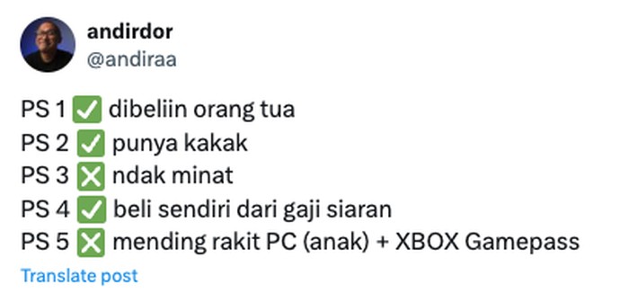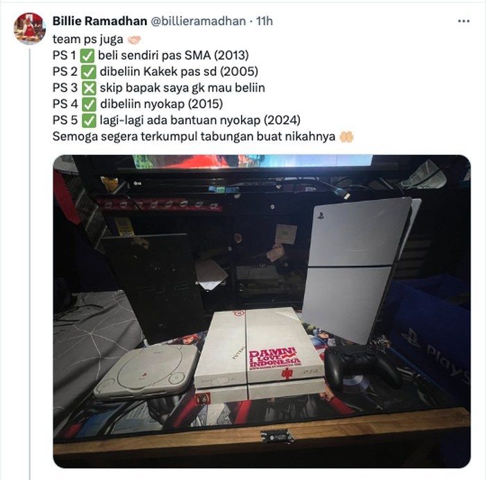 Dari patungan sama adik saat beli PS 1 hingga bisa beli sendiri PS5. Foto: Twitter