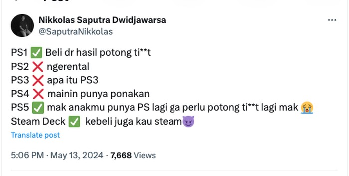 Beli PS 1 dari sunat... Sekarang bisa beli PS 5m Steam Deck. Foto: Twitter