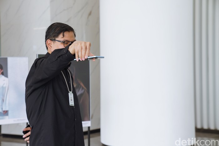 Aryo Meidanto selaku PR Manager Oppo Indonesia sedang mendemonstrasikan ketahanan Oppo A60 dengan menjatuhkannya ke lantai. Foto: Mohammad Frizki Pratama