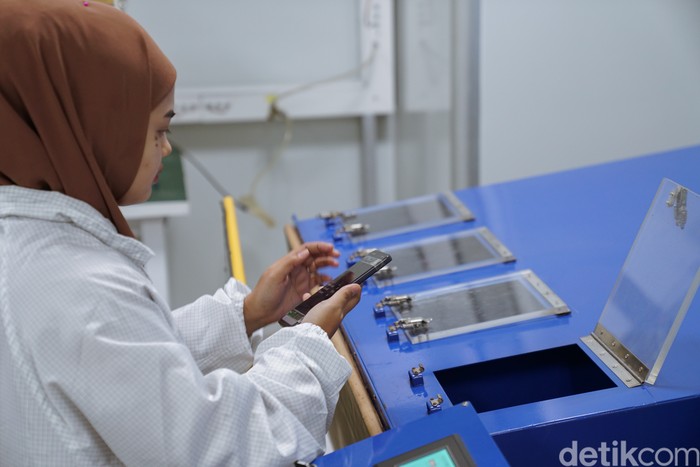 Setelah selesai melakukan pengujian, nantinya pihak labolatorium akan memeriksa semua fungsi hp tersebut termasuk fungsi LCD dan suara. Foto: Mohammad Frizki Pratama