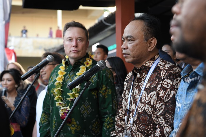 Elon Musk berkunjung ke Bali meresmikan Starlink di Indonesia. Layanan internet berbasis satelit ini sudah bisa melayani masyarakat Tanah Air. Foto: Kementerian Kominfo