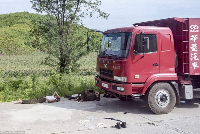 Foto-foto terlarang ini diamblil di wilayah Mount Kumgang dan Wonsan. Tampak di sini tentara Korut lelah tiduran di sisi truk. Foto: Pen News
