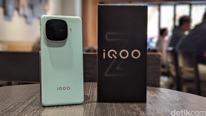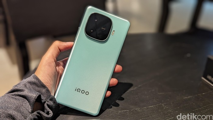 Unit iQOO Z9 yang disediakan untuk detikINET hadir dalam warna Breeze Green dengan nuansa hijau muda yang menyegarkan. Foto: Virgina Maulita Putri/detikINET