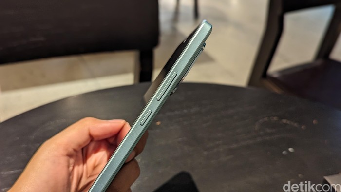 Tombol volume dan power disematkan di sisi kanan ponsel. Foto: Virgina Maulita Putri/detikINET