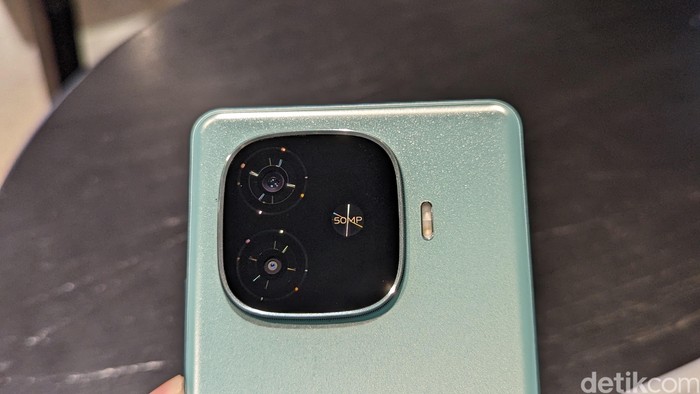 Di bagian belakangnya terdapat dua kamera belakang dengan kamera utama 50 MP yang ditemani flash LED. Foto: Virgina Maulita Putri/detikINET