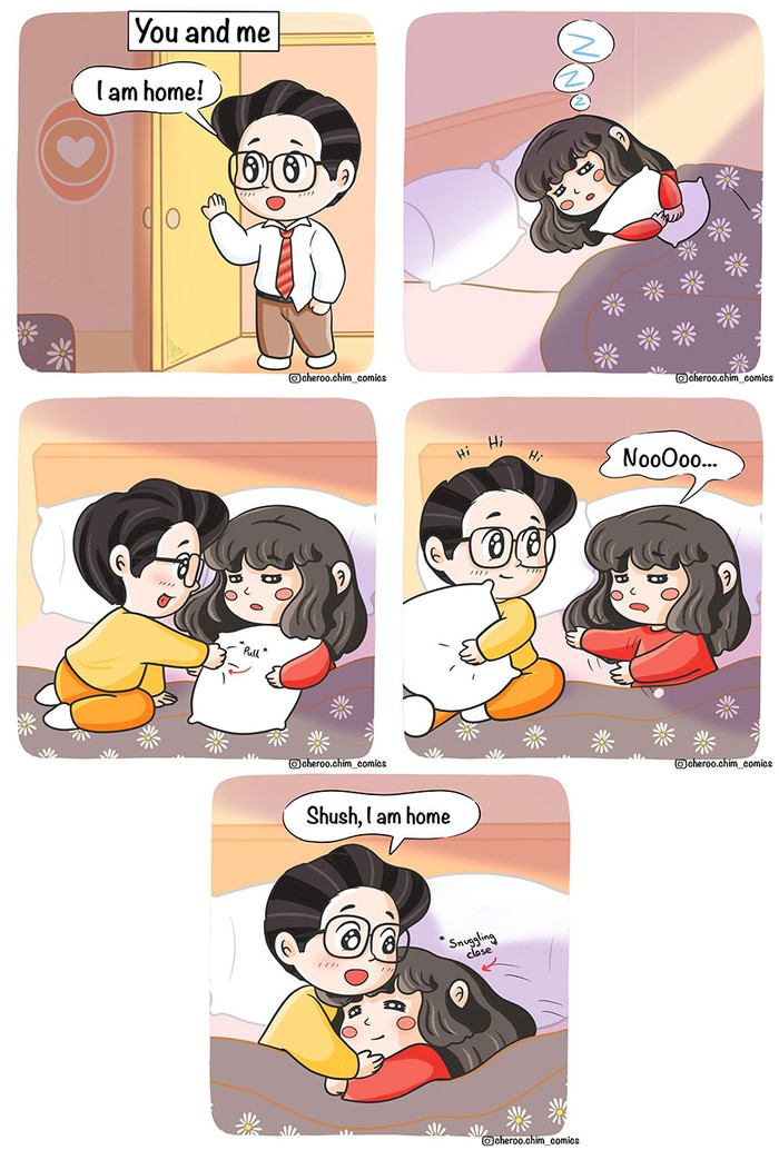 Tempat ternyaman memang berada di dekat pasangan. Foto: (Bored Panda).