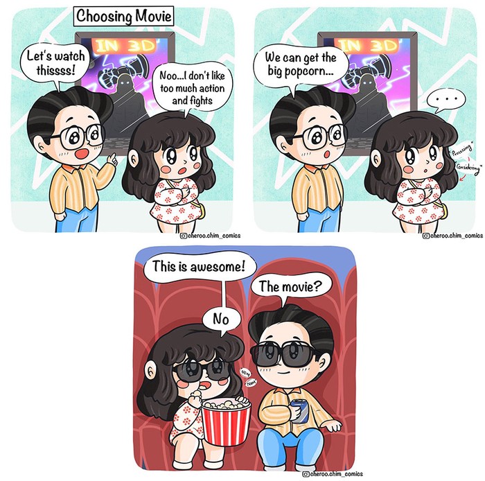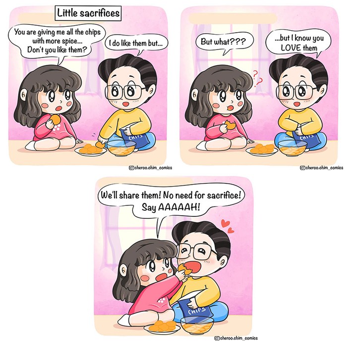 Makan cemilan favorit memang paling pas saat bersama pasangan. Foto: (Bored Panda).