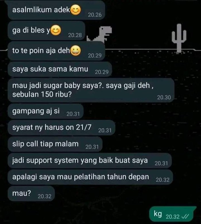 Apaan sugar baby Rp 150.000/bulan. Foto: X/txtdariwhatsap