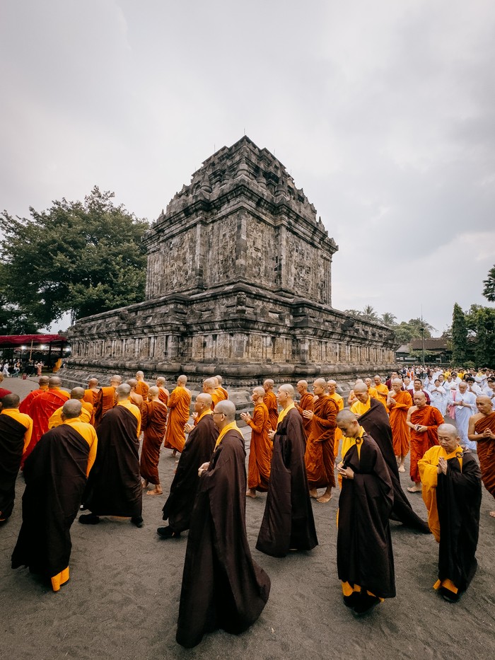 Prosesi Paradaksina mengelilingi Candi Mendut sebanyak tiga kali. Foto: Ulet Ifansasti