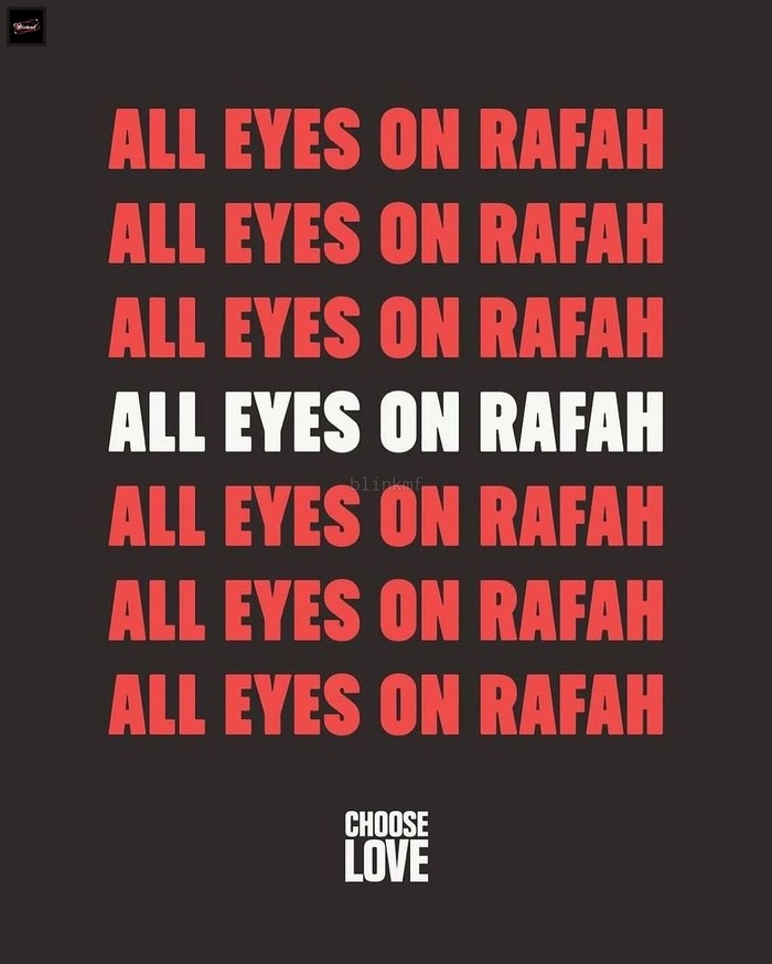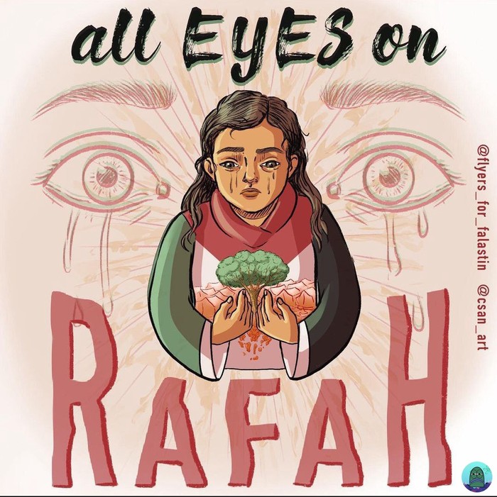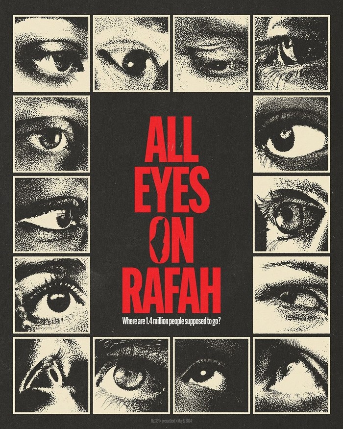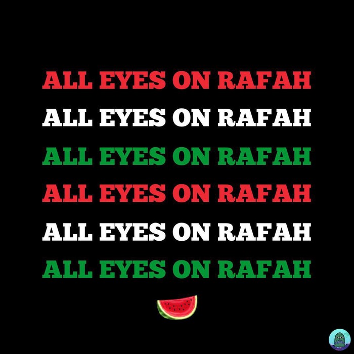 Sebuah seruan menggema di seluruh penjuru dunia, "All Eyes On Rafah". Tagar yang memiliki arti "Semua Mata Tertuju ke Rafah". Foto: Screenshot/X