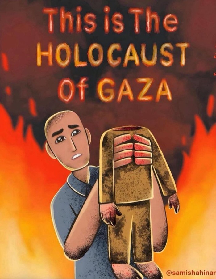 Kata-kata maupun foto dipajang berharap semua itu dapat menarik perhatian seluruh dunia terhadap genosida yang sedang berlangsung. Foto: Screenshot/X