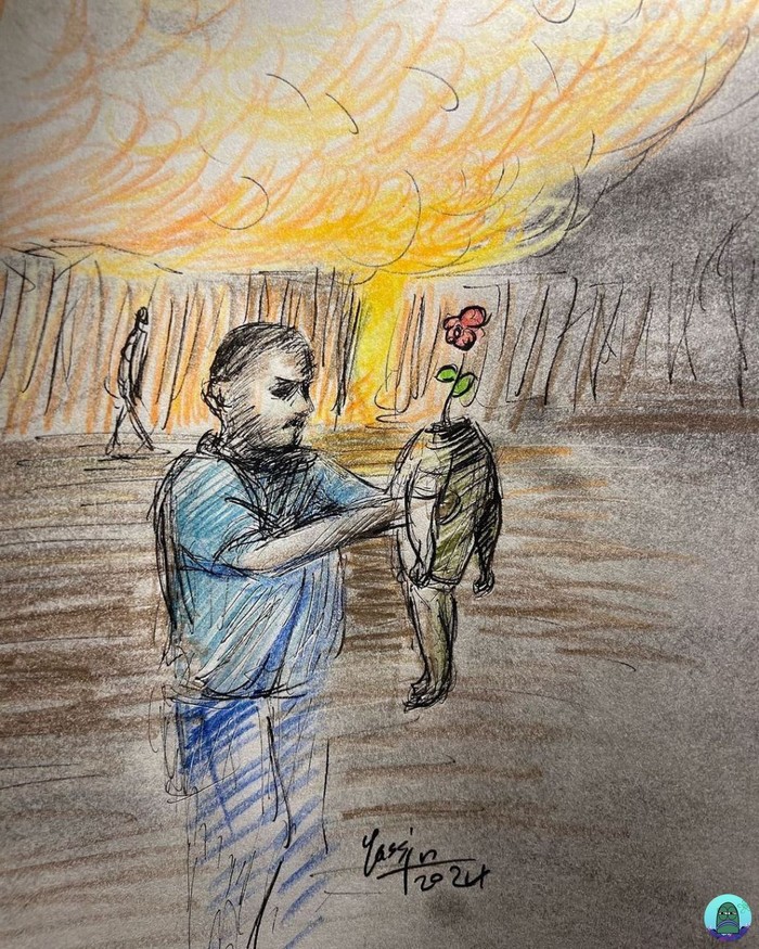 Poster tangan yang terbakar menggapai harapan, sungguh kejam tindakan Israel di Rafah! Foto: Screenshot/X