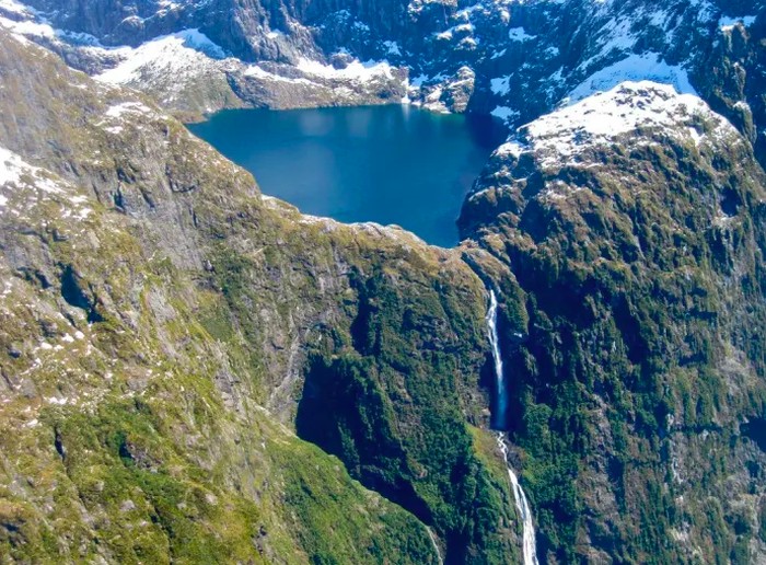 #10. Air Terjun Browne, Selandia Baru. Air Terjun Browne terletak di dekat ujung selatan Selandia Baru, bermuara di Doubtful Sound di sepanjang pantai Taman Nasional Fjordland. Dimulai dari ketinggian 619 meter, air terjun ini melewati serangkaian tetesan berbusa secara bertahap sebelum terjun ke jurang yang dalam dan berbatu. Bagian bawah air terjun berkelok-kelok melewati vegetasi lebat, yang menyembunyikan jalurnya dari sebagian besar orang yang melihatnya. Foto: National Geographic