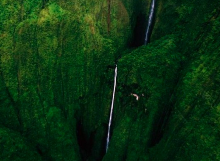 #8 Pu'uka'oku, Amerika Serikat. Air terjun setinggi 840 meter ini ditemukan di sepanjang pantai terjal Moloka'i di Kepulauan Hawaii. Wisatawan hanya bisa melihat air terjun tersebut dari perahu atau helikopter. Foto: flickr.com/matt via Triphobo
