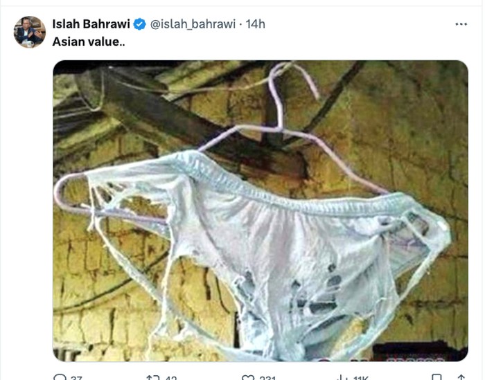 Asian Value memakai celana dalam meski sudha bolong-bolong. Foto: Twitter