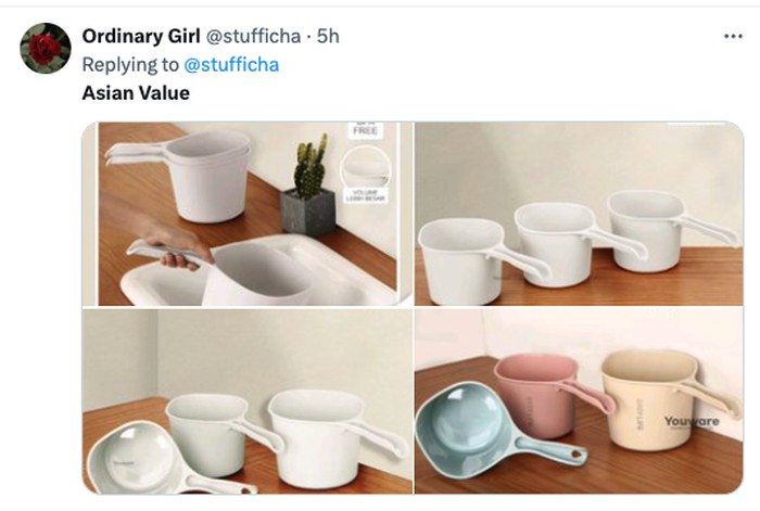 Masih pakai gayung yang menjadi asian value... Foto: Twitter