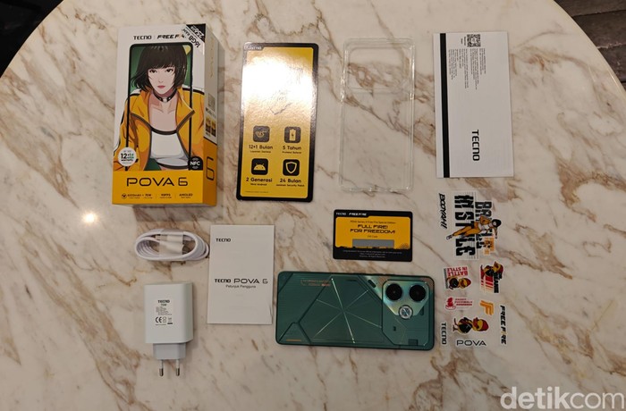 Inilah isi dalam kotak kemasan Tecno Pova 6. Foto: Adi Fida Rahman/detikINET